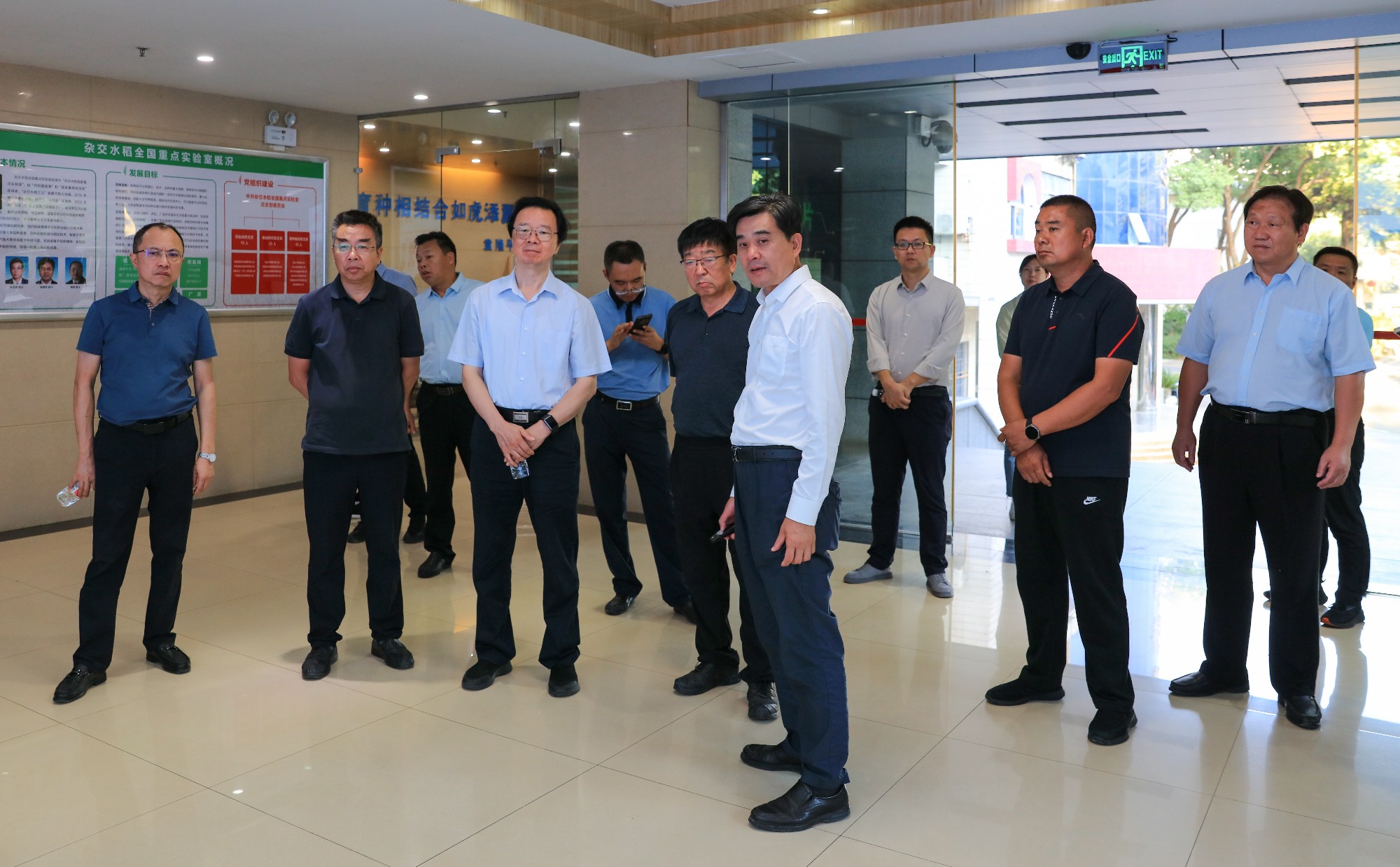 调研组还来到杂交水稻全国重点实验室,听取了柏连阳关于实验室建设和研究进展汇报,对实验室培育的镉低积累水稻、耐盐碱水稻和超高产水稻等重大成果表示充分肯定,希望杂交水稻创新团队继续加大核心技术攻关力度,为保障国家粮食安全作出新贡献。