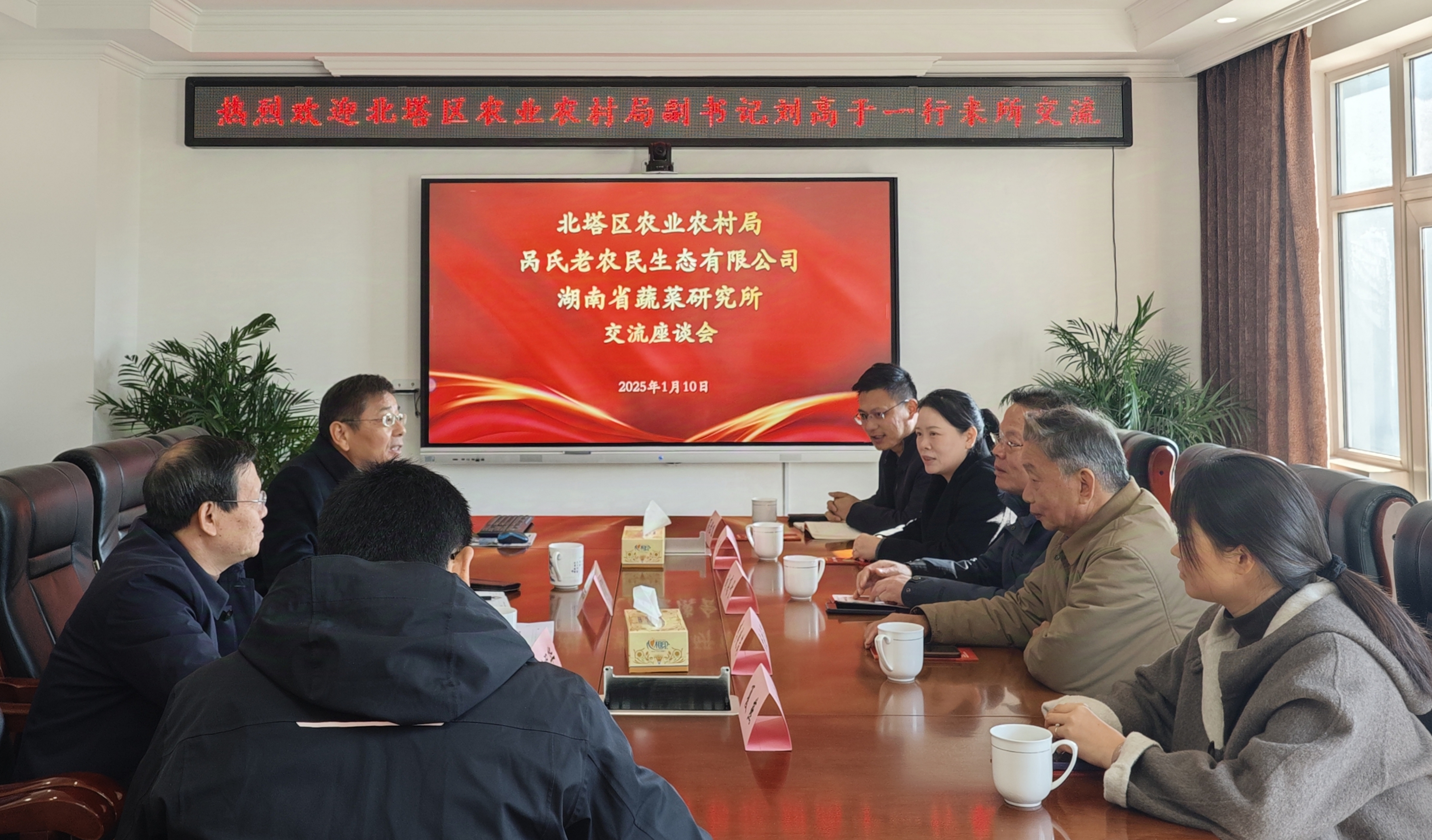 1月10日,邵阳市北塔区农业农村水利局党组副书记刘高于、副局长李琴和湖南呙氏老农民生态农业股份有限公司董事长呙拉飞等一行5人来我院蔬菜所考察交流。所长李雪峰主持交流座谈会,袁祖华研究员、殷武平和童辉助理研究员参加会议。