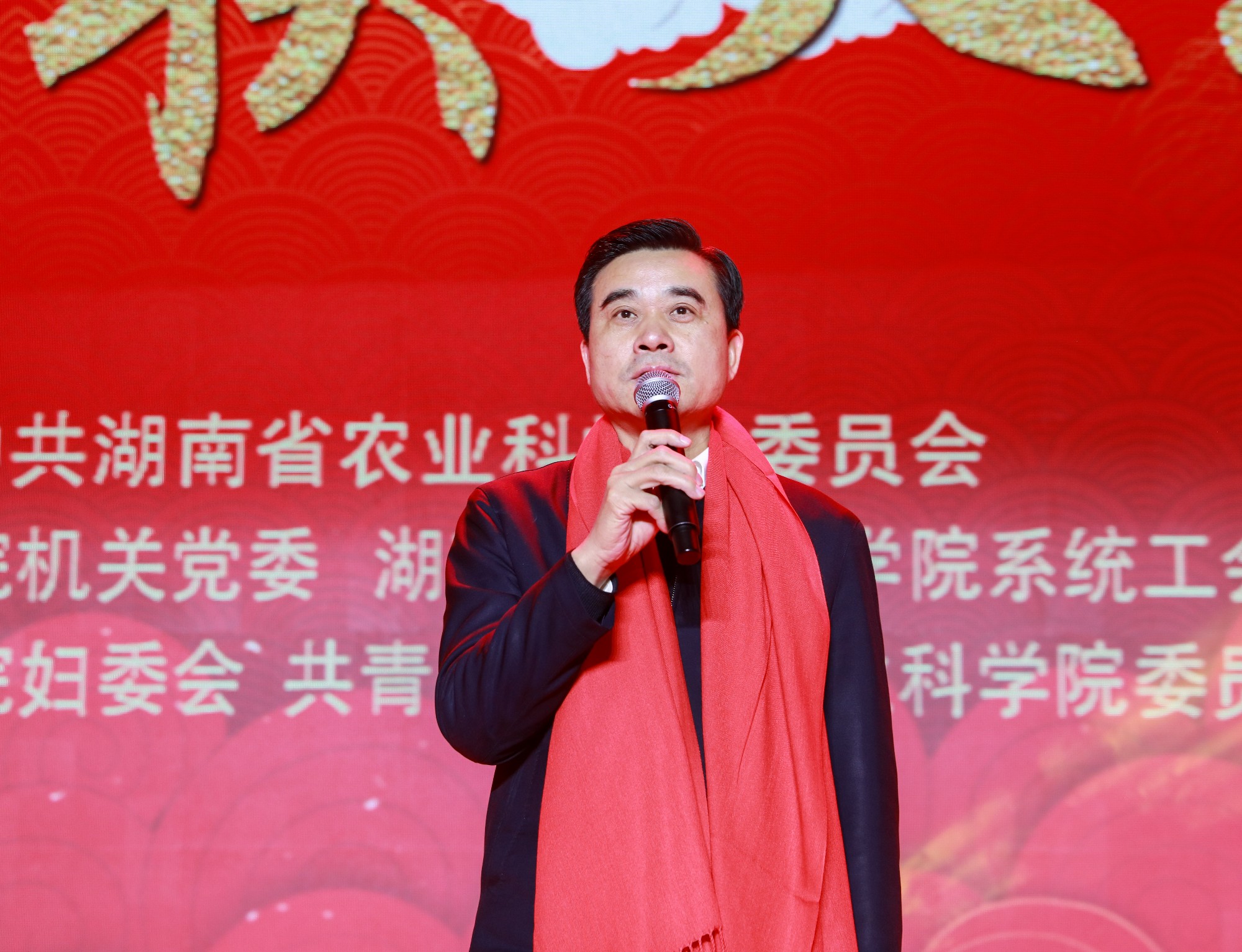 柏连阳在新春致辞中向全院干部职工致以诚挚问候和美好祝愿。他回顾了过去一年我院在农业科技创新中取得的成绩,特别是岳麓山实验室作为湖南加快实现“三高四新”美好蓝图的标志性工程,正式落成与运营,在农科人不断攀登农业科研高峰中具有里程碑意义。本次联欢会是党的十八大以来全省农科系统举办的第一次盛会,并在岳麓山实验室举办,意义非凡。他特别感谢省直工委、省总工会等上级部门的关心支持和全院干部职工的辛勤付出,号召大家弘扬袁隆平科技创新精神,不断强化文化建设,载歌载舞唱出对祖国、人民、科技和事业的无限热爱。他相信,新的一年在大家的共同努力下,我院一定能够在农业科技创新的道路上不断取得新突破,为推动农业现代化、助力乡村全面振兴作出新的贡献。
