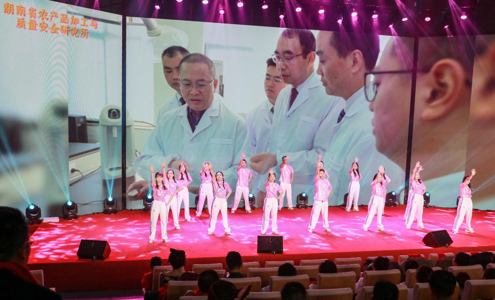 联欢会分为三个篇章。第一篇章:农科新韵。由省农业经济与信息所和怀化市农科院等6家单位带来了《乐舞飞扬》、《敬酒歌》等歌舞和朗诵、茶艺及情景剧表演,充分展示了农业科技工作者的执着和坚韧,不忘服务“三农”事业初心,为湖南农业高质量发展注入的新动能,展现了新面貌。